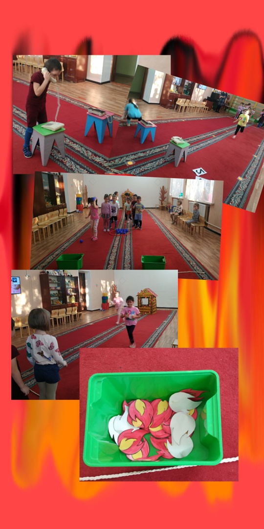 - закрепить знаний алгоритма действий при пожаре, знание номеров служб спасения;