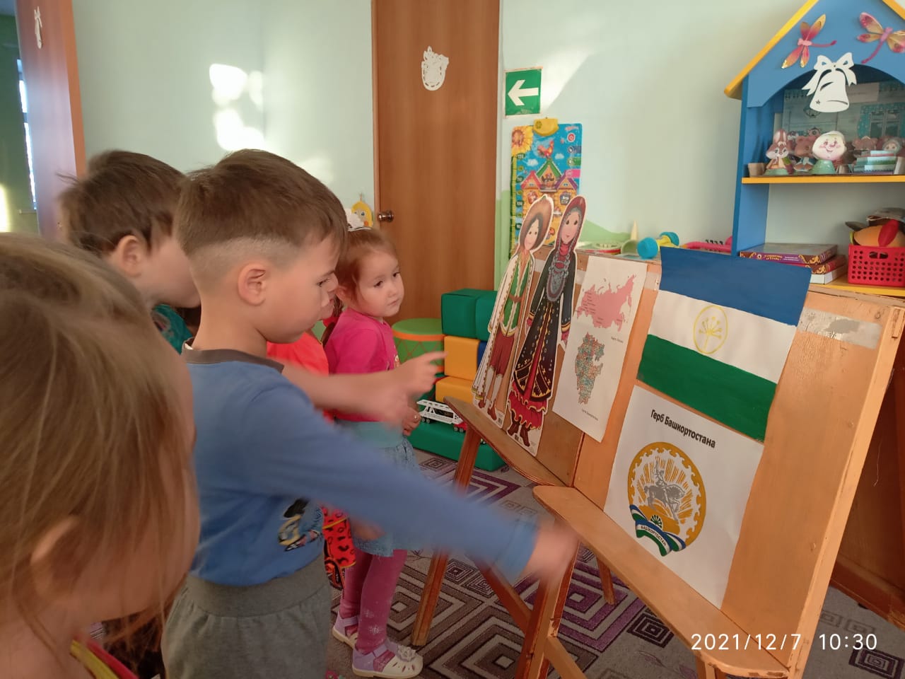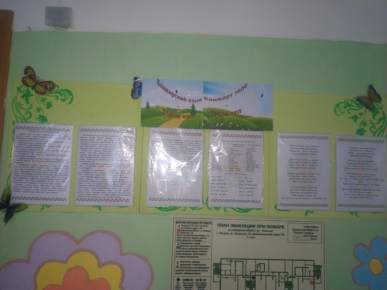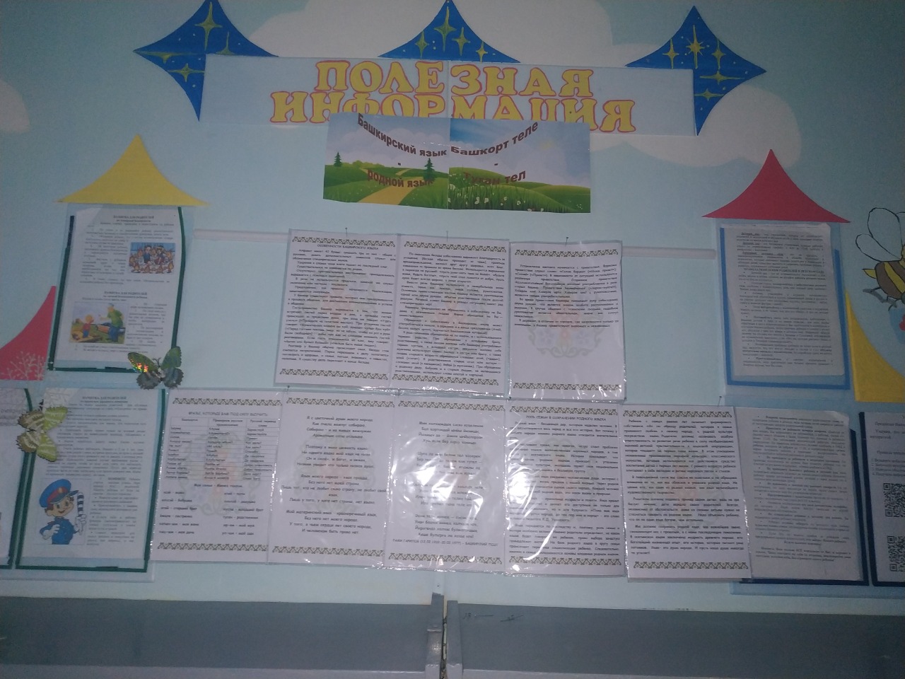 В приемной воспитателем Тимониной Т.А. был создан стенд с символикой Республики Башкортостан, биографией Мифтахетдина Акмуллы и интересными фактами о башкирском языке.