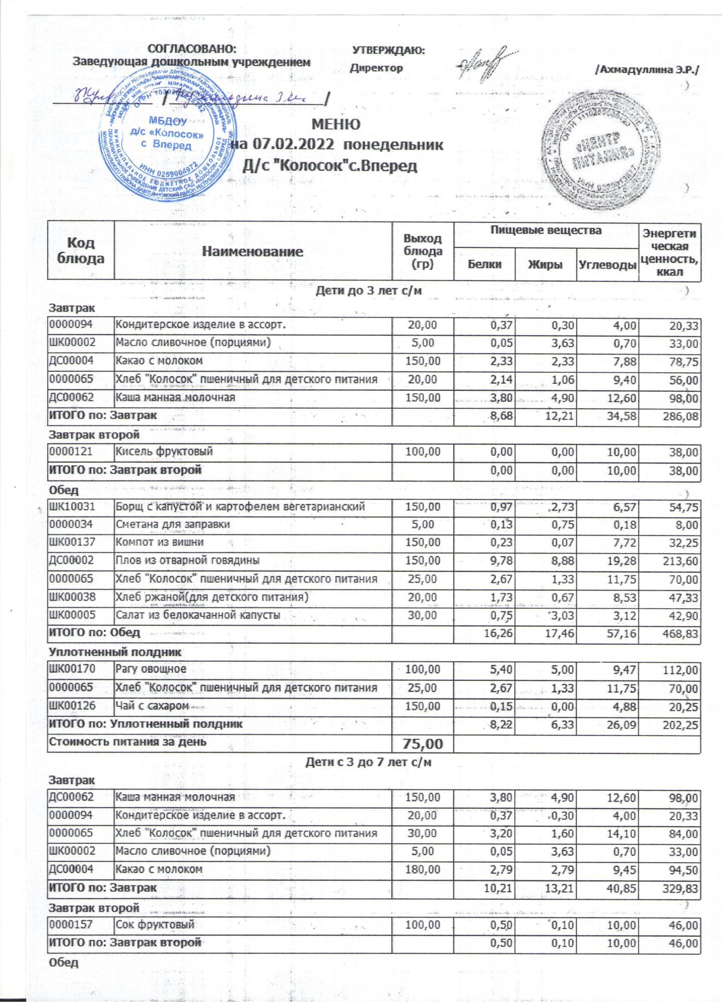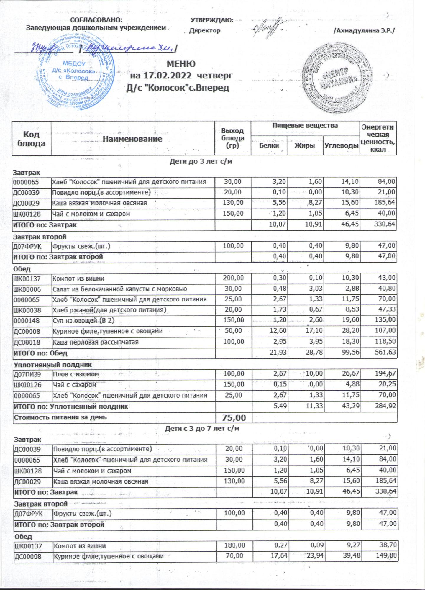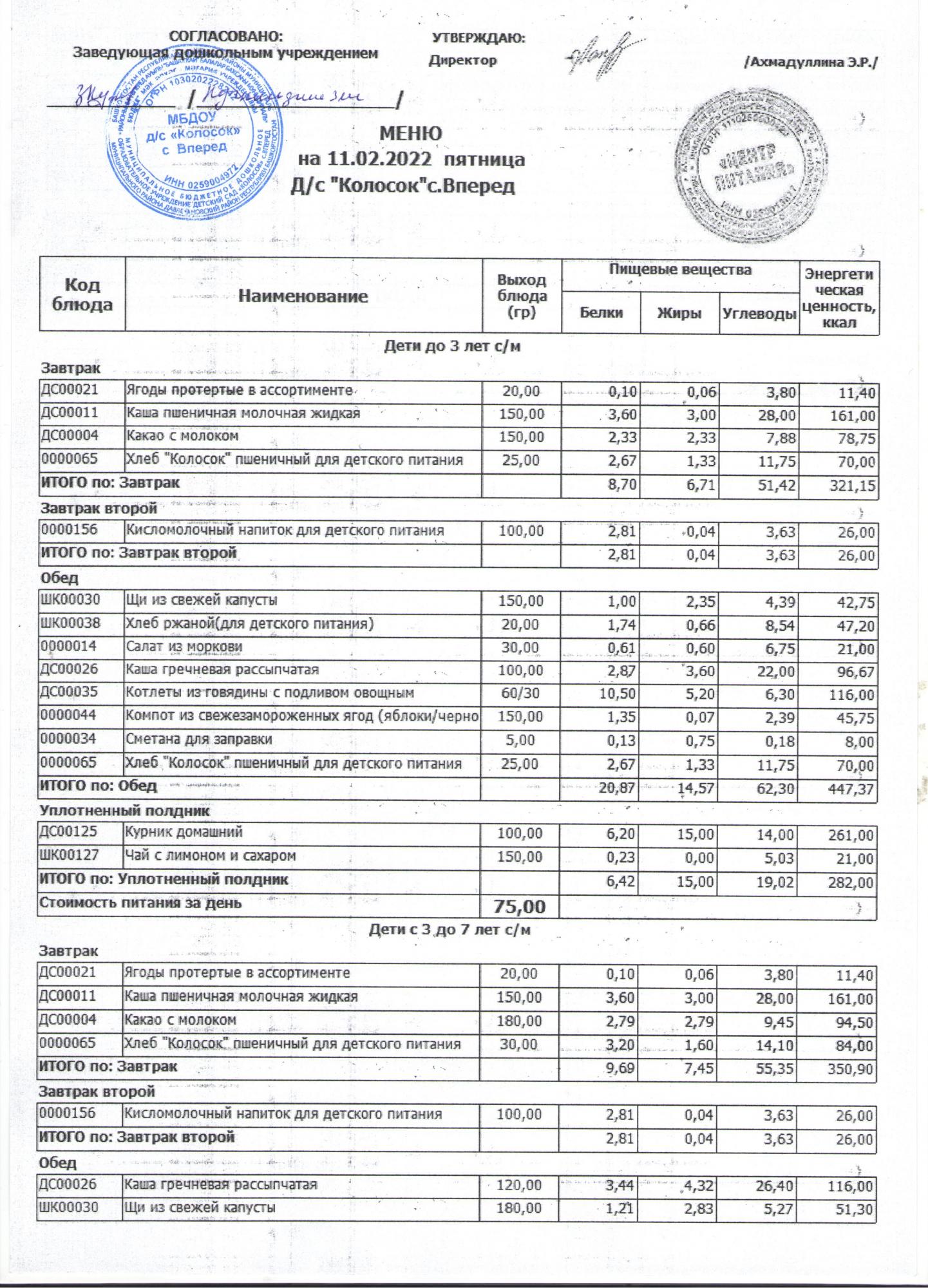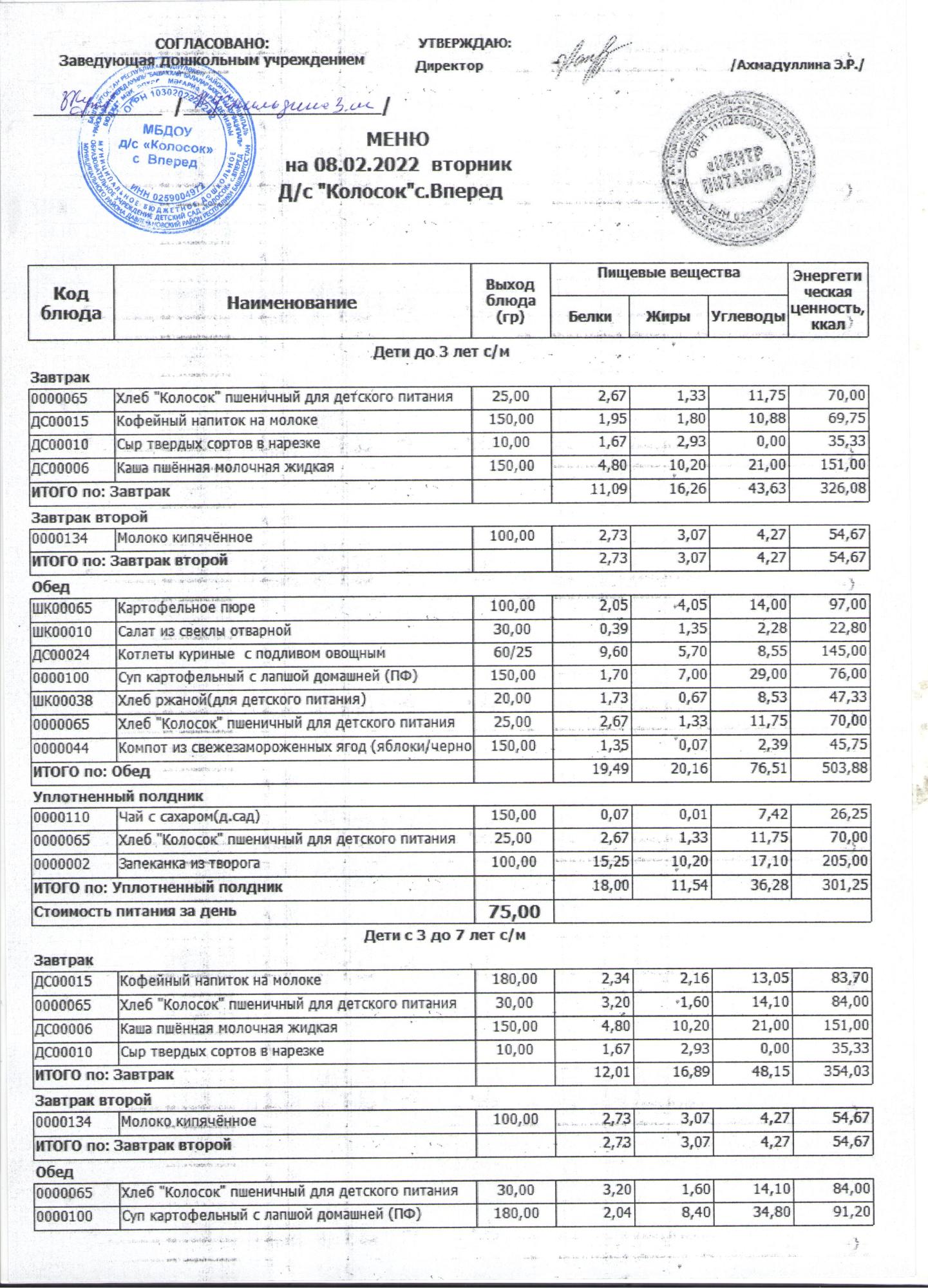 (Меню в д\с "Колосок" с. Вперед на осенне-зимний период)