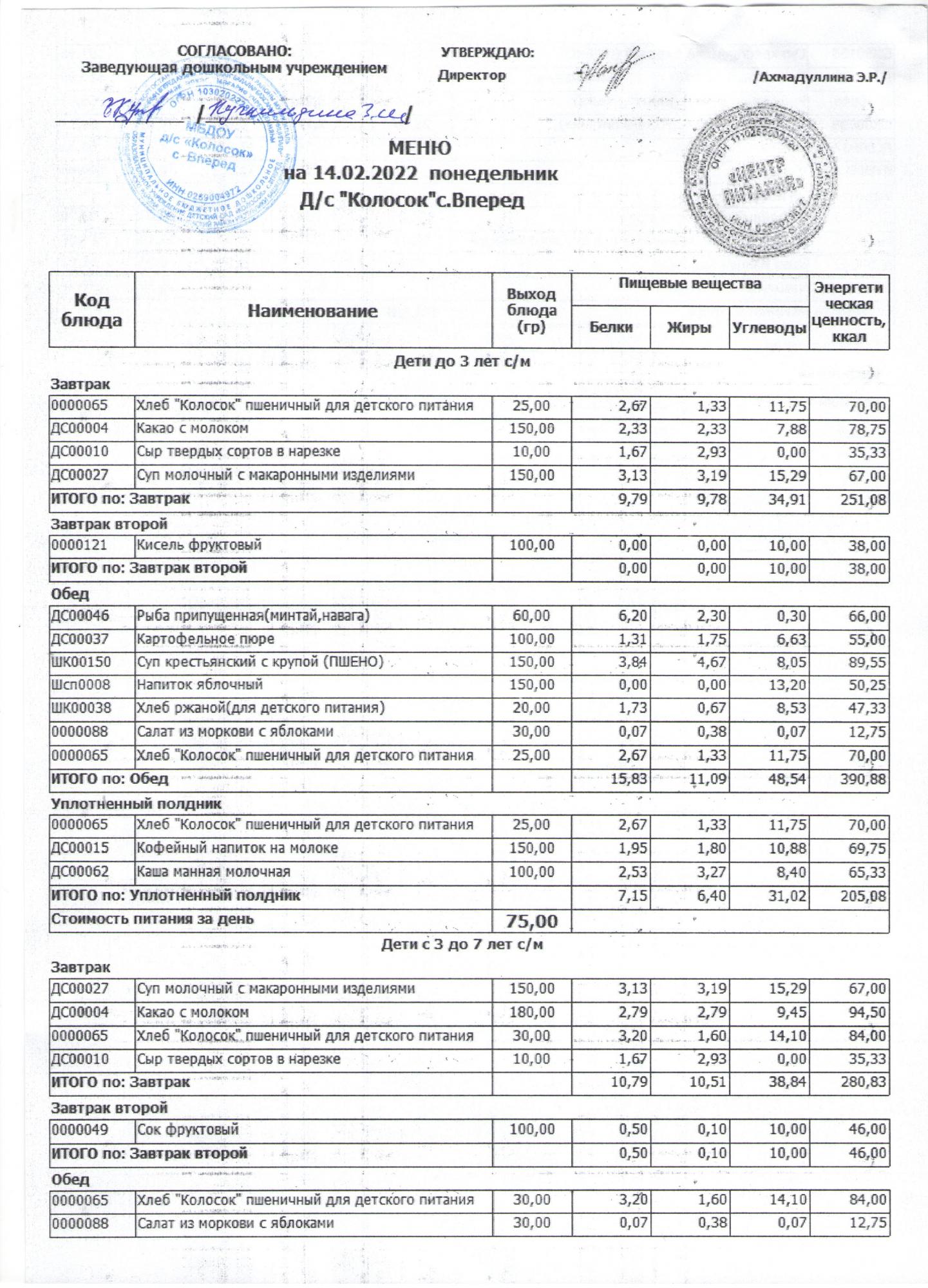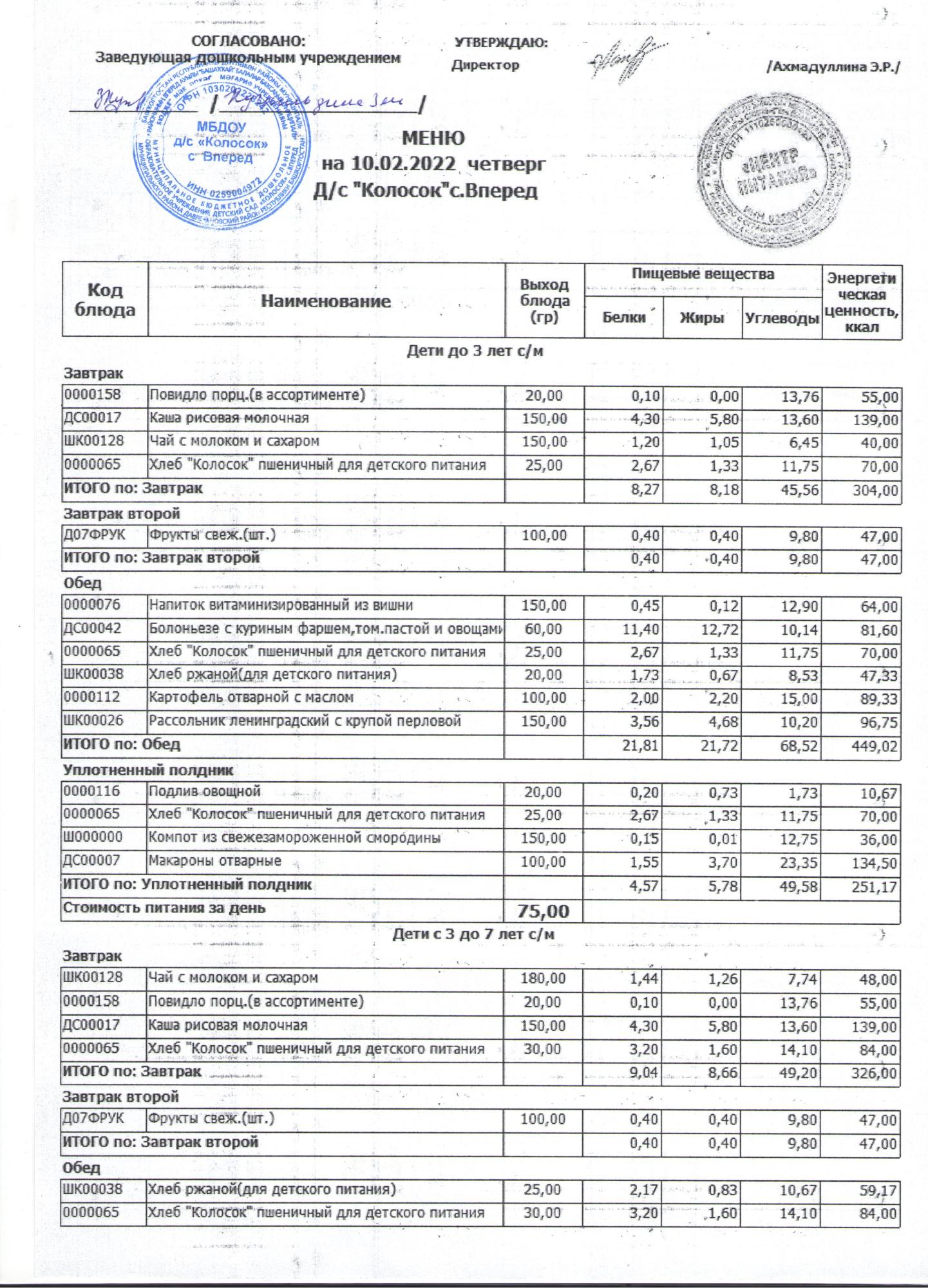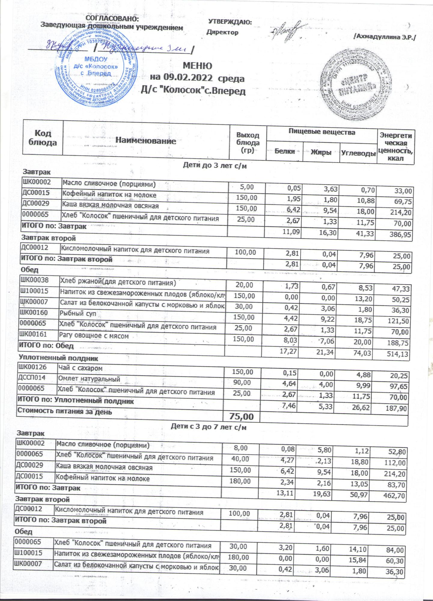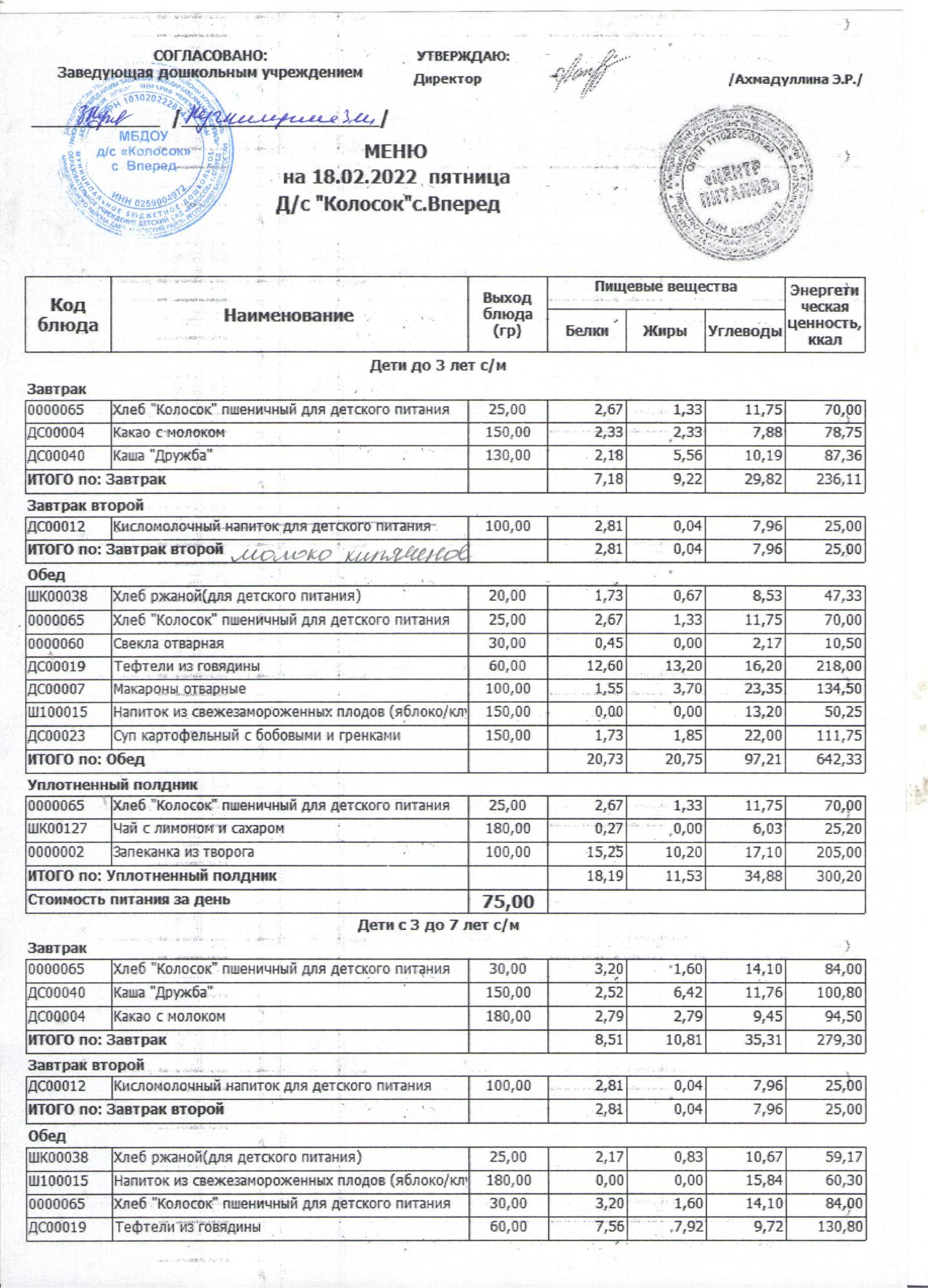 (Меню в д\с "Колосок" с. Вперед на осенне-зимний период)