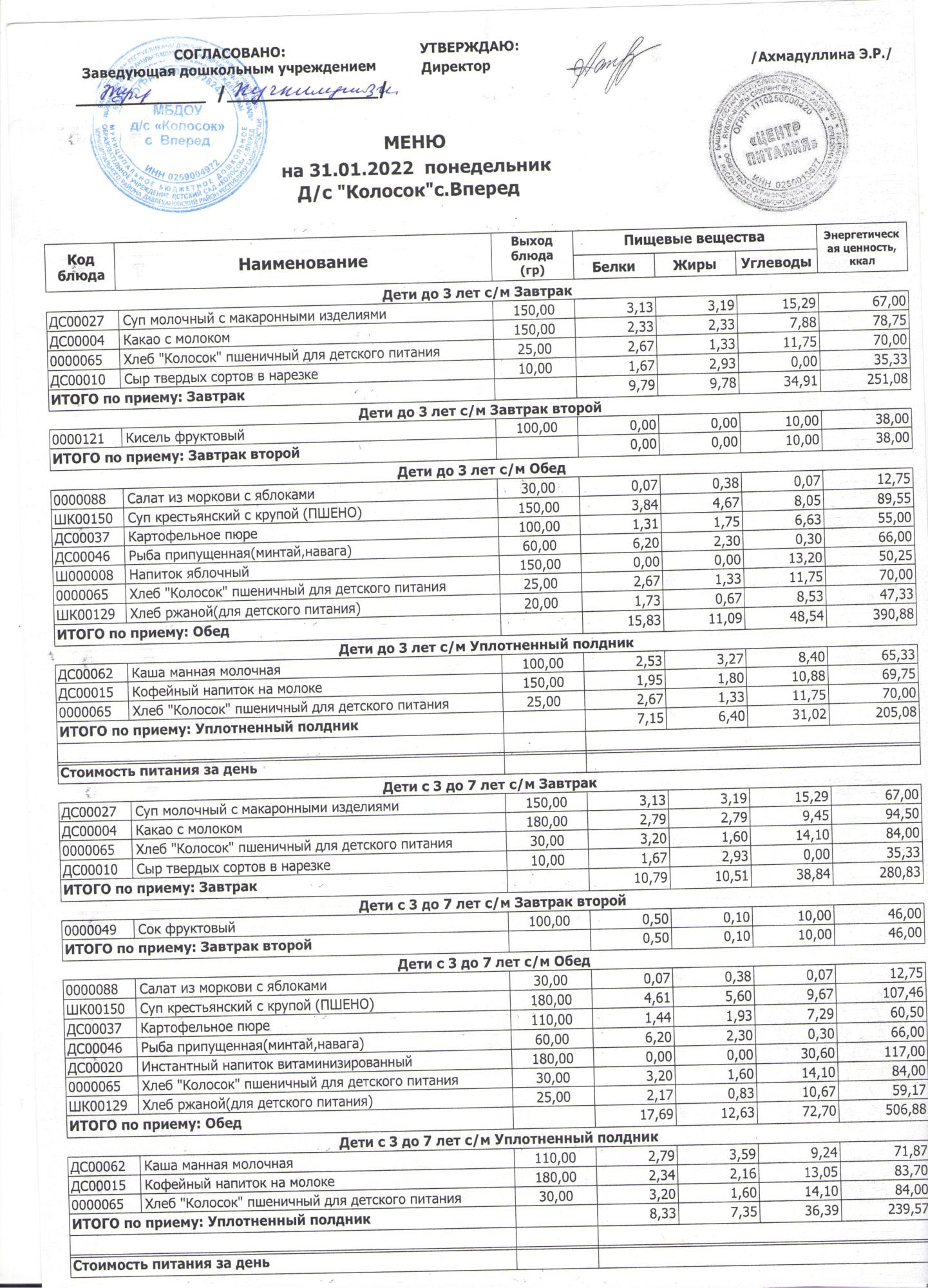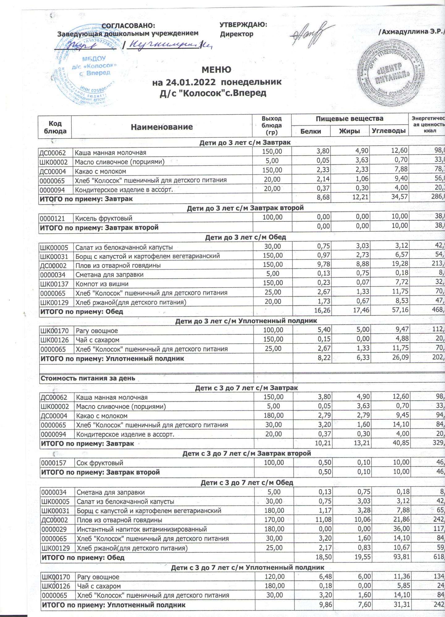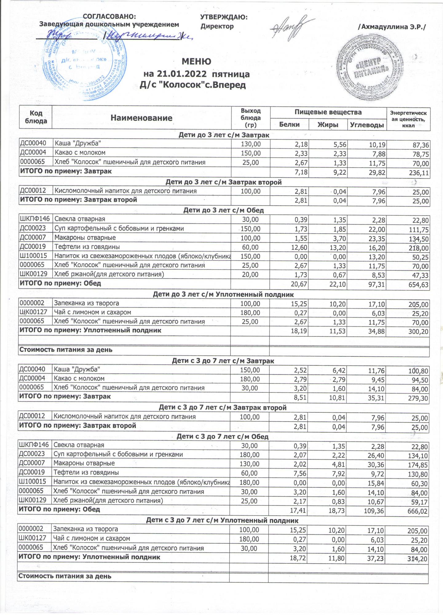(Меню в д\с "Колосок" с. Вперед на осенне-зимний период)