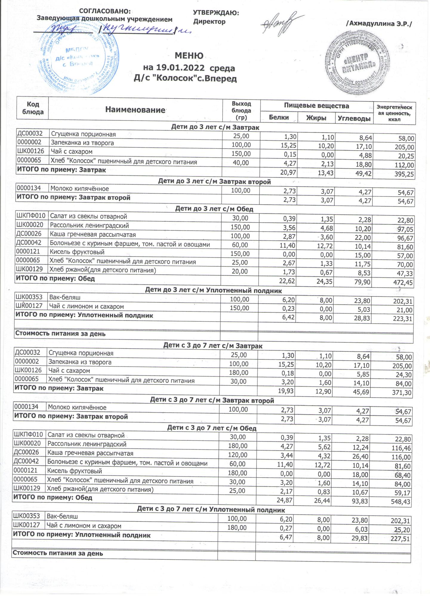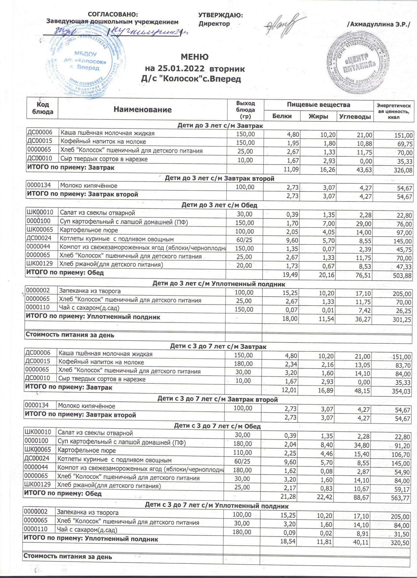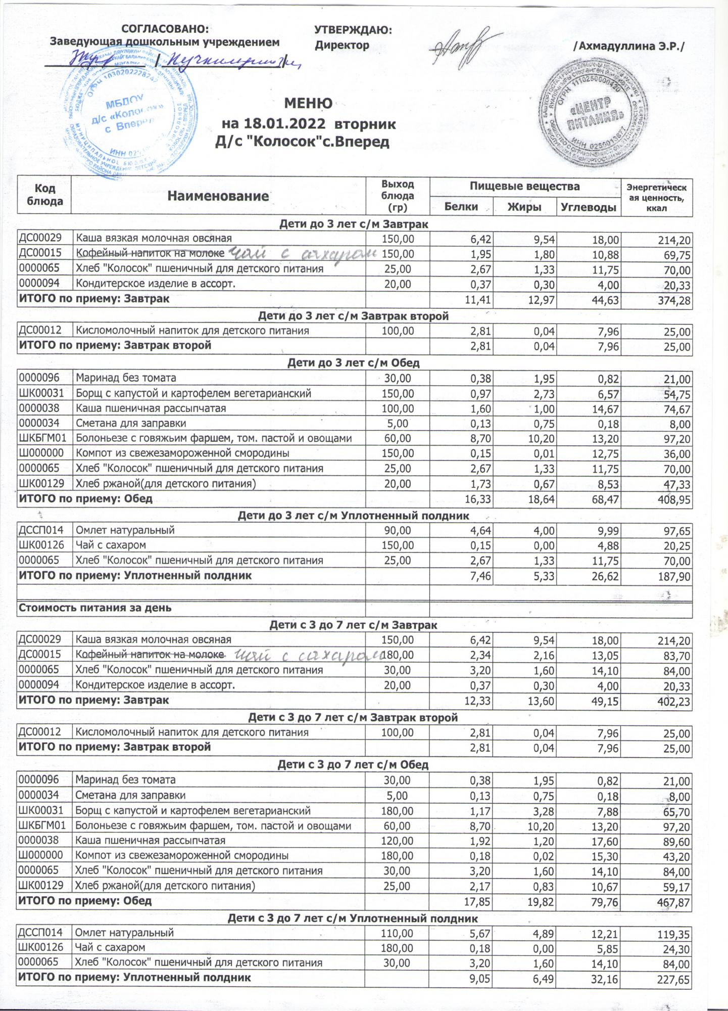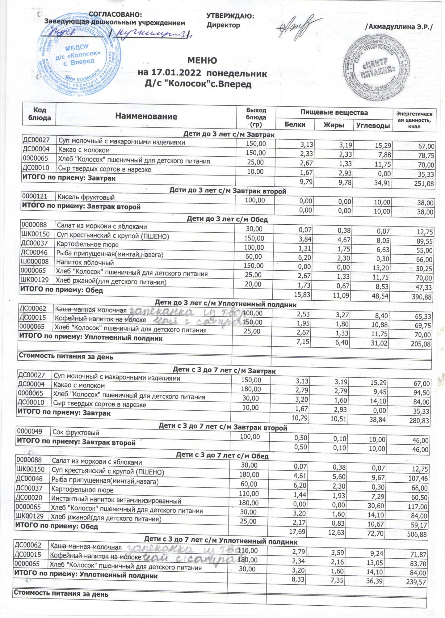 (Меню в д\с "Колосок" с. Вперед на осенне-зимний период)