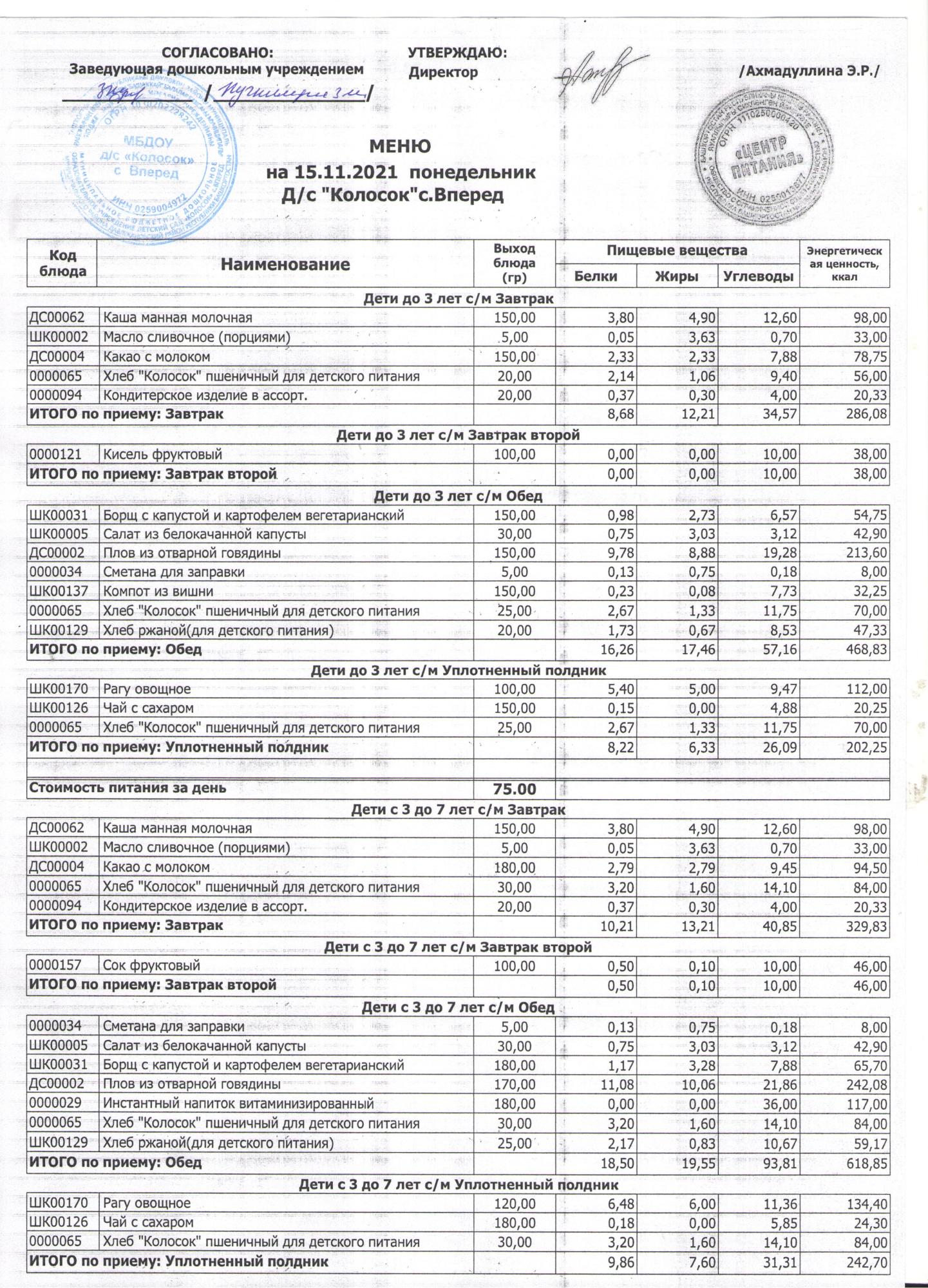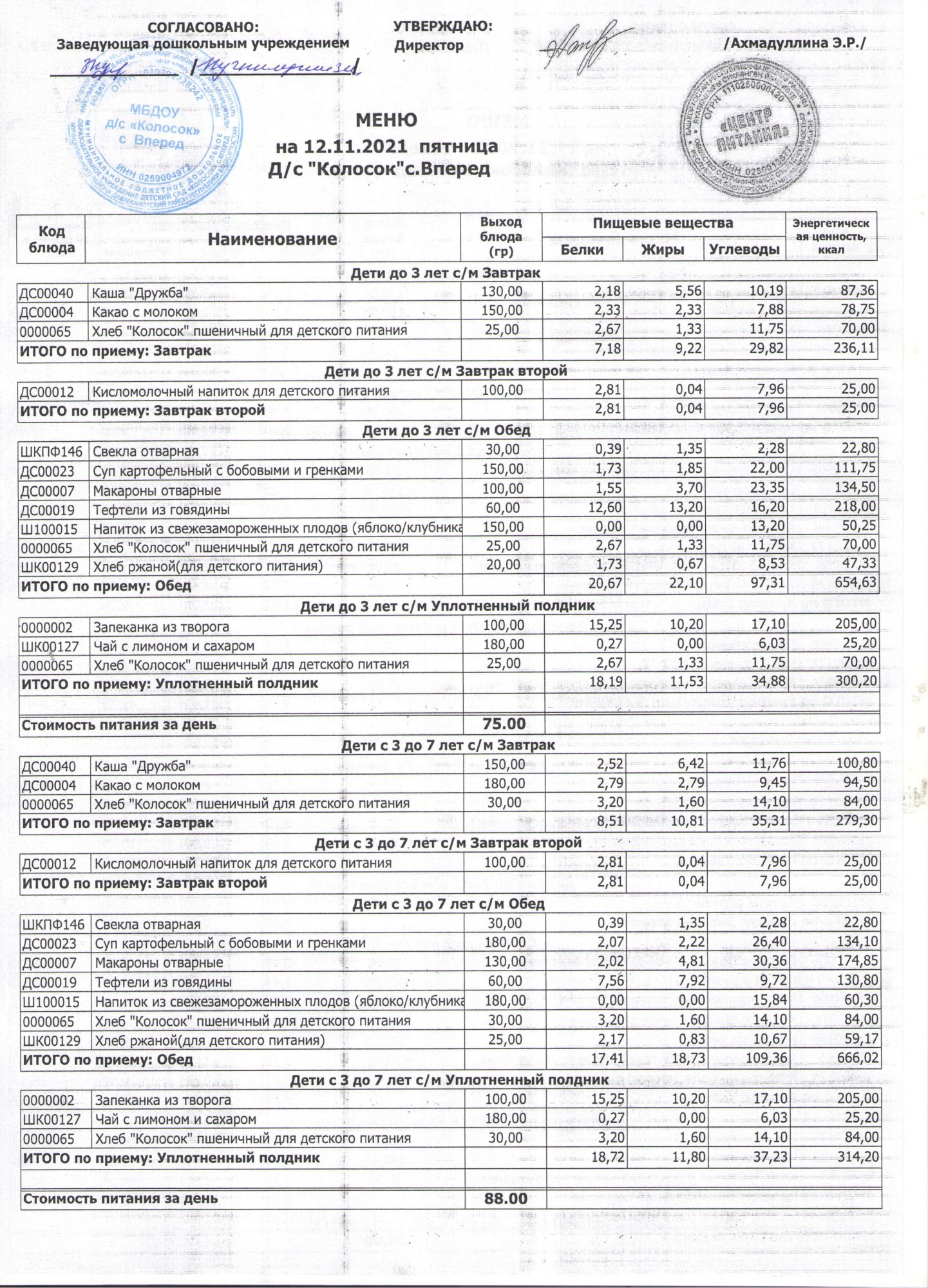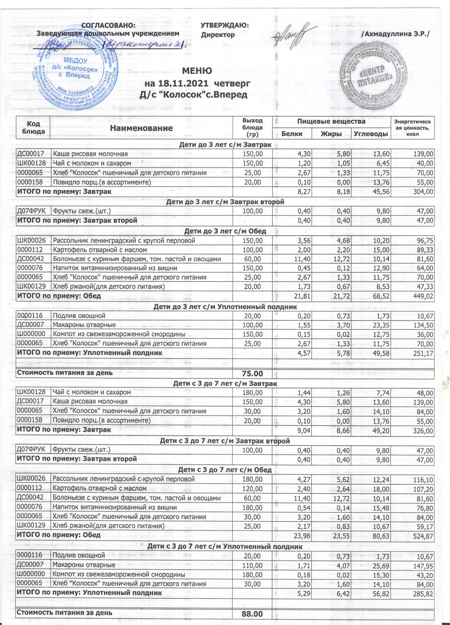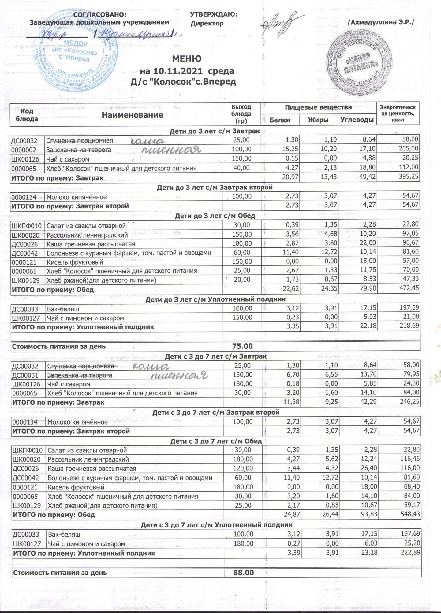 (Меню в д\с "Колосок" с. Вперед на осенне-зимний период)