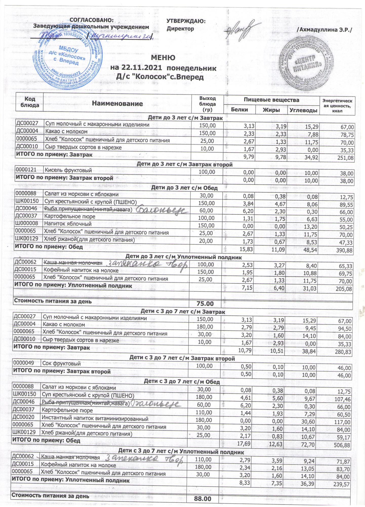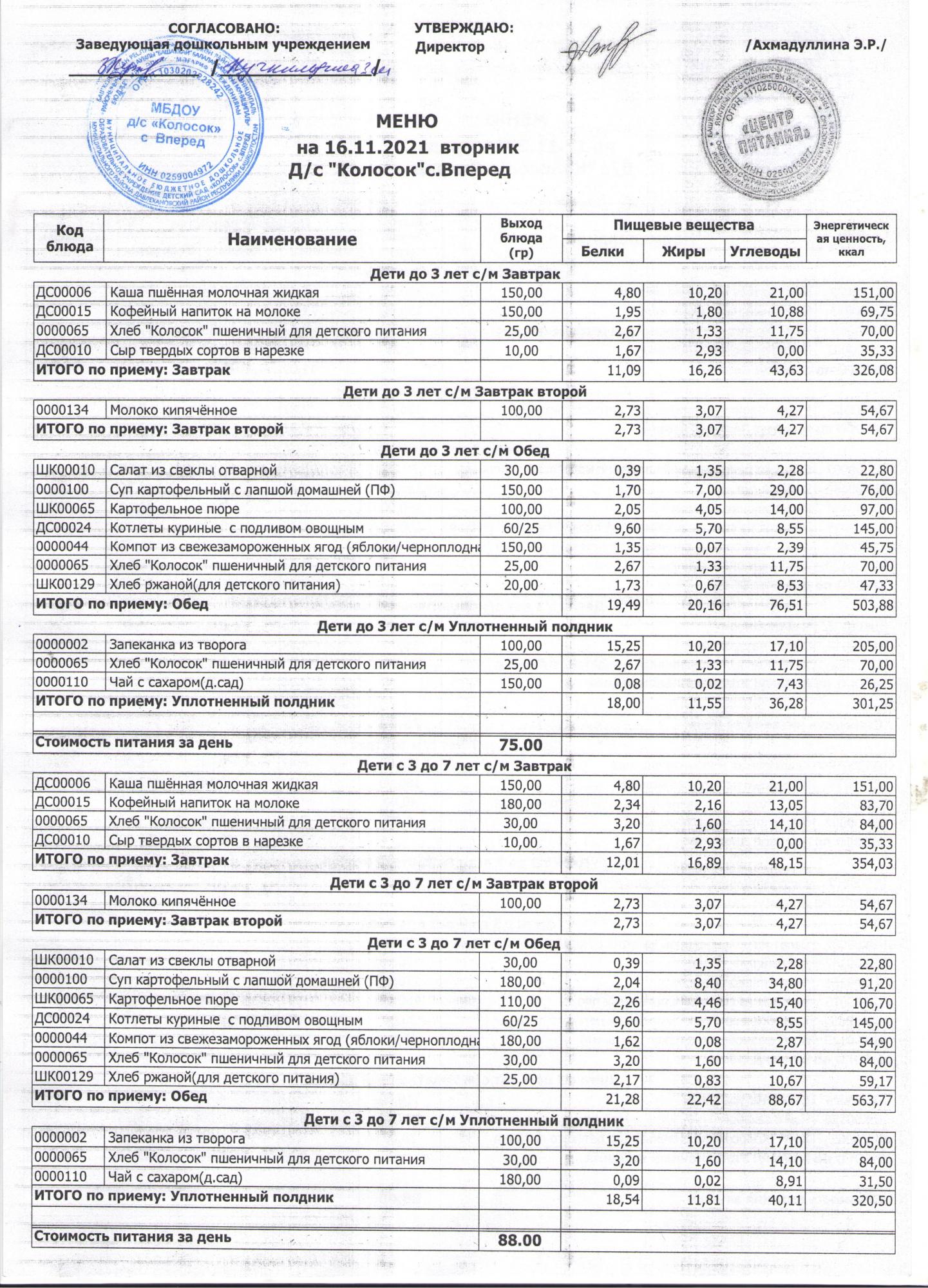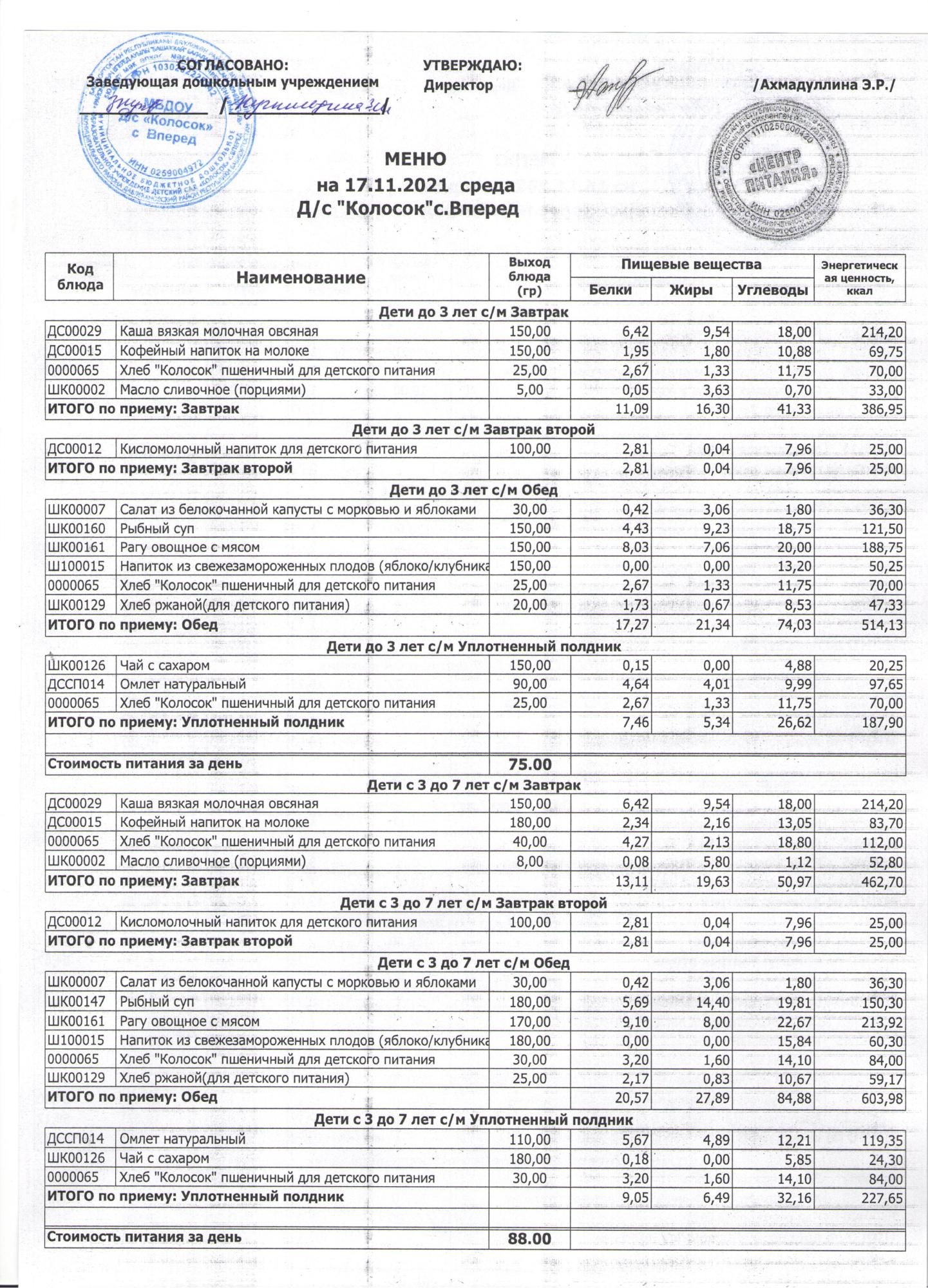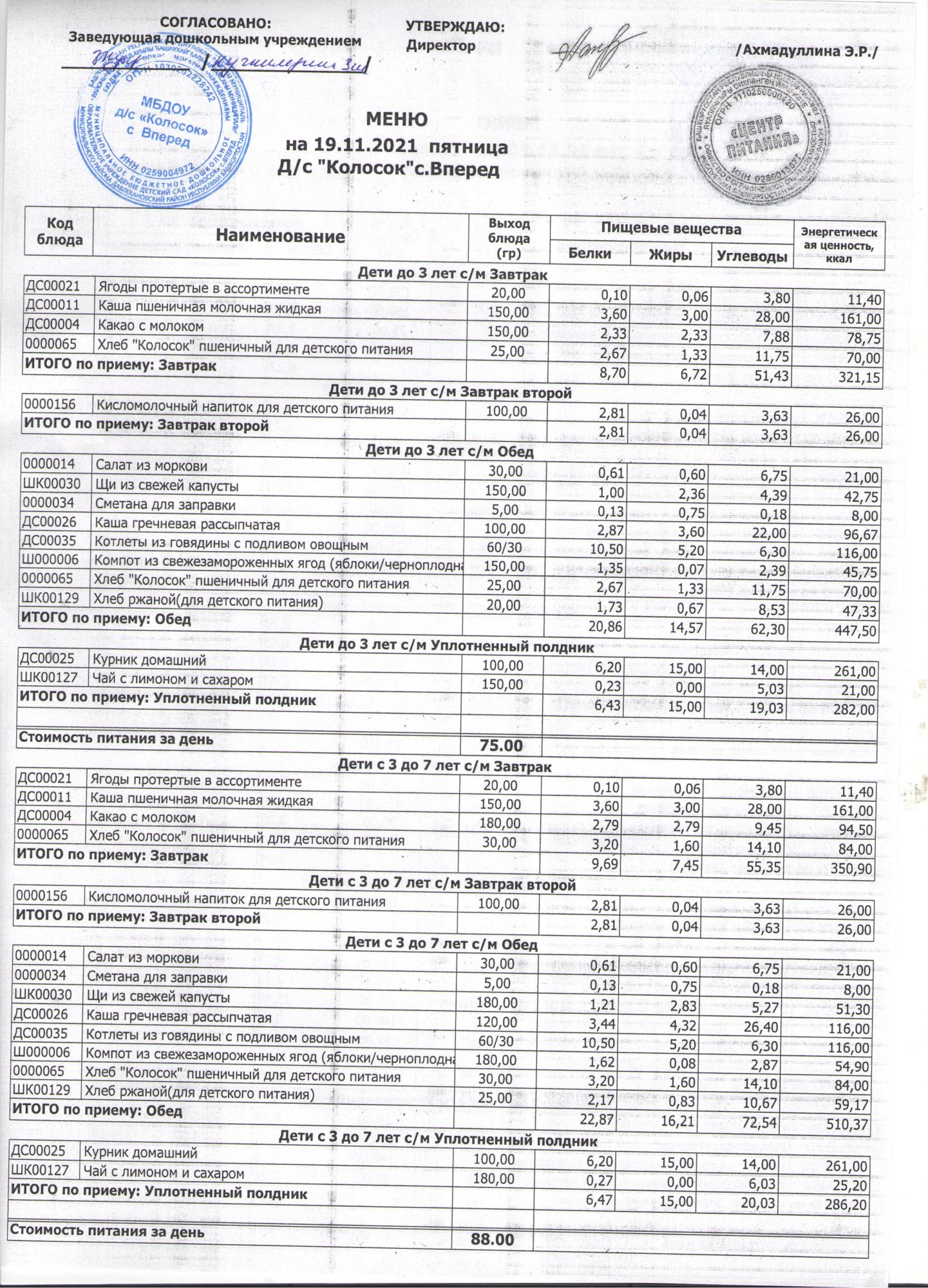 (Меню в д\с "Колосок" с. Вперед на осенне-зимний период)